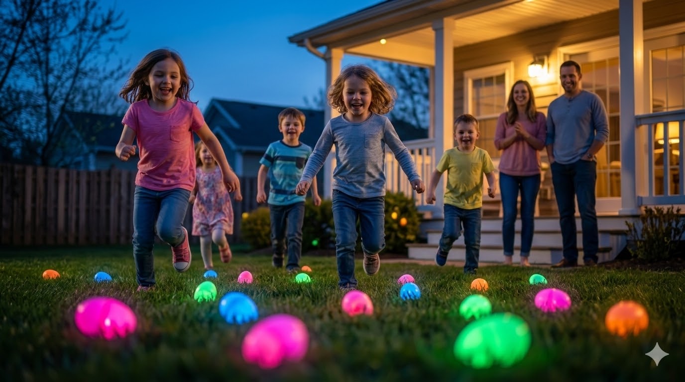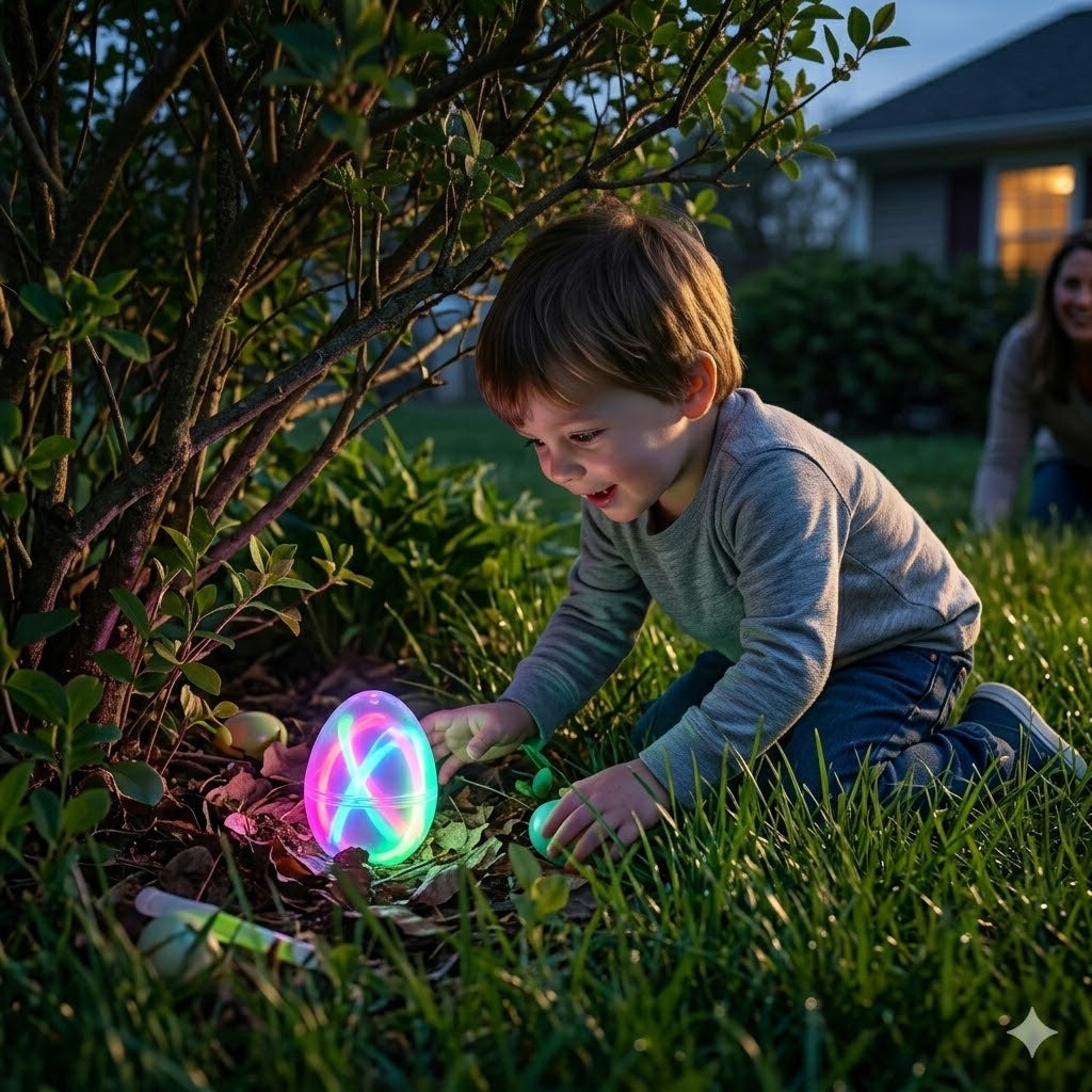 Standard egg hunts end fast. Kids scatter, grab, done. But hide glowing eggs at dusk and suddenly every single egg becomes a discovery. Kids sprint, squeal, and strategize. The hunt lasts longer. The laughter is louder. And you? You're the parent who made it happen — with a $20 box.